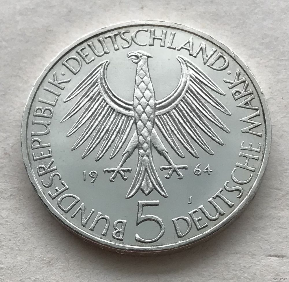 Германия 5 марок 1964 - 150 лет со дня смерти Иоганна Готлиба Фихте - редковата, серебро 0,625!