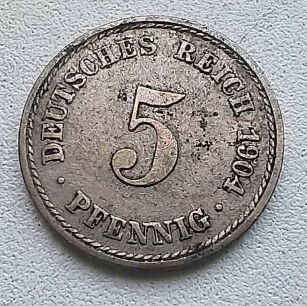 Германия 5 пфеннигов, 1904 А 2-12-5