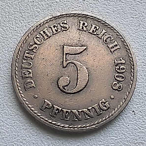 Германия 5 пфеннигов, 1908 A 2-12-13