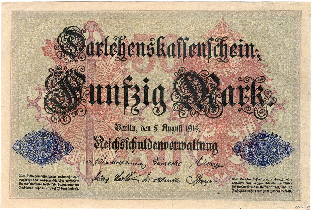 Германия, 50 марок, 1914 г., aUNC