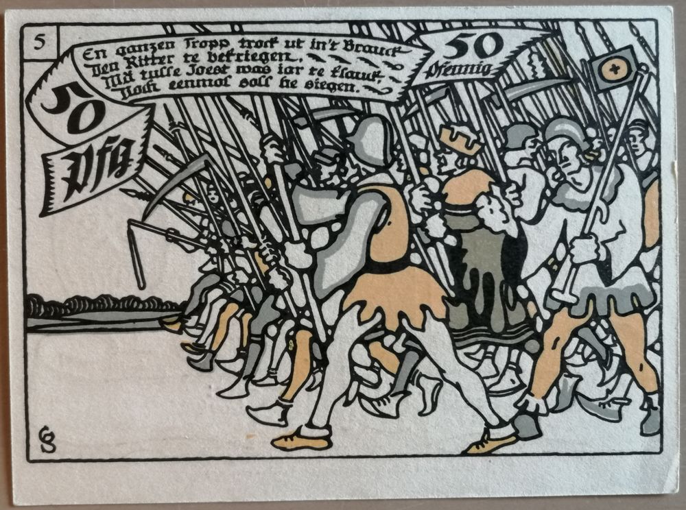 Германия 50 пфеннигов 1921 г Херне (Herne) H30.7a, Вар. 5, UNC. Номер варианта -- левый верхний угол реверса.