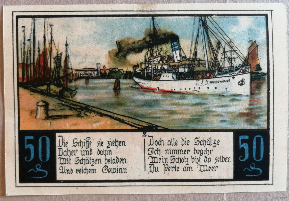 Германия 50 пфеннигов 1921 г Свинемюнде (Swinemünde) (без даты), 1306.1b, UNC, редкая