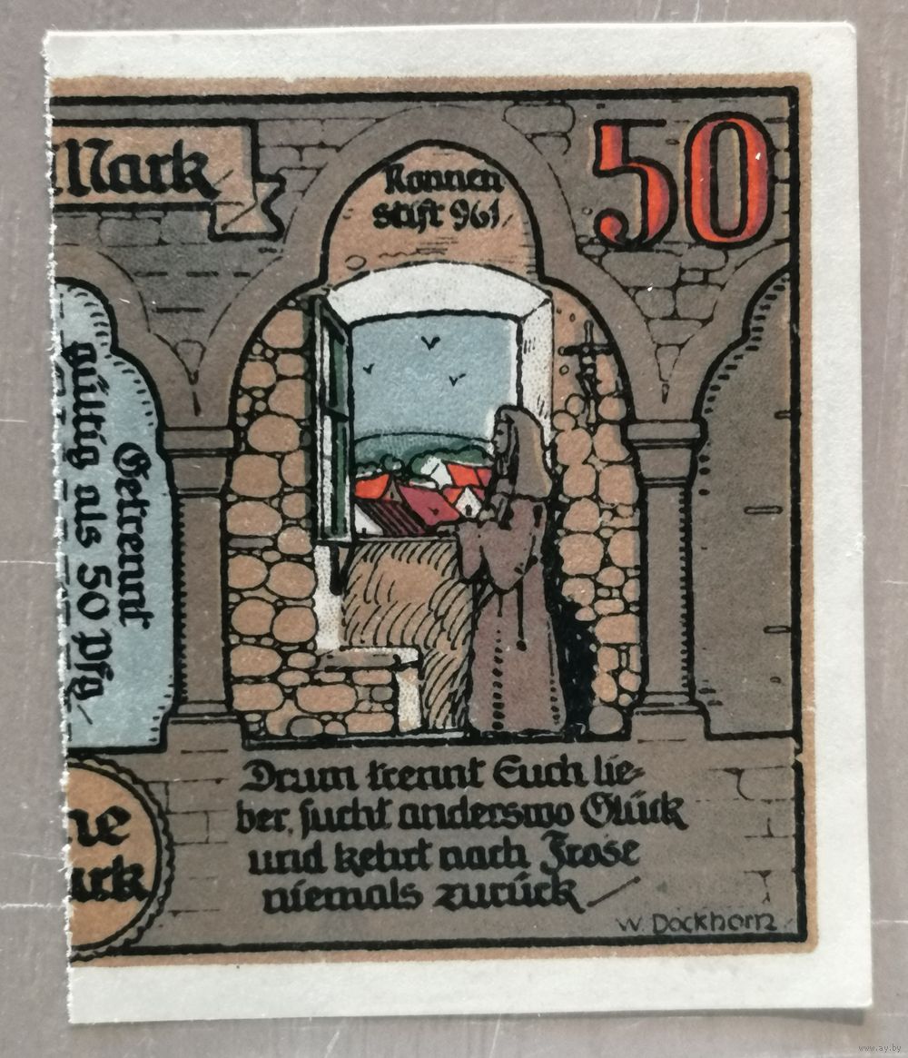 Германия, нотгельды, 50 пфеннигов 1921 год, Хальберштадт, редкая надпечатка на половинке нотгельда