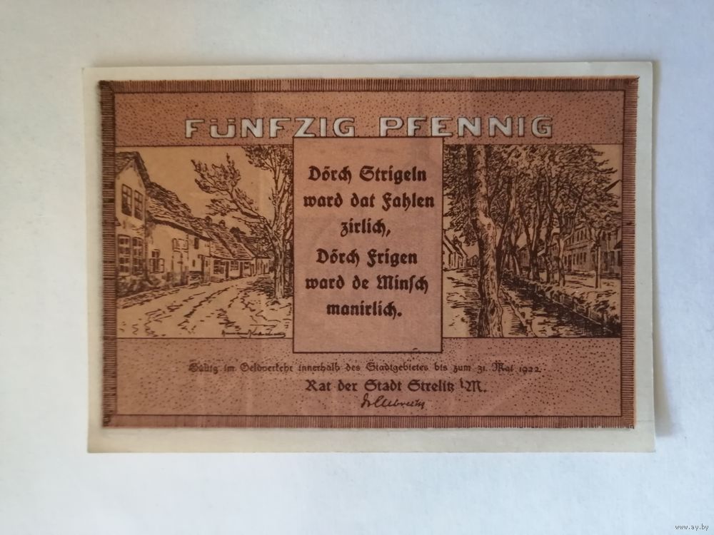 Германия 50 пфеннигов 1922 г Штрелиц (Strelitz) 1283.1--3/3, a UNC, частный выпуск для оплаты прогулок по парку.