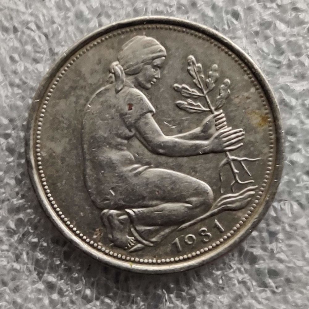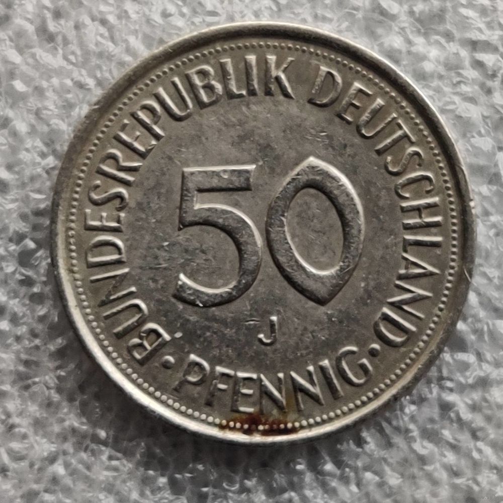 Номер  KM # 109  Страна  Германия  Период  Федеративная Республика (1990 - 2001)  Валюта  Немецкая марка  Вид чекана  Регулярный чекан  Номинал  50 пфеннигов  Год  1950 - 2001  Гурт  Разновидности  Форма  Круг  Отношение авс/рев  Медальное (0°)  Материал  Медно-никелевый сплав  Вес (g)  3,5  Диаметр (mm)  20  Толщина (mm)  1,58