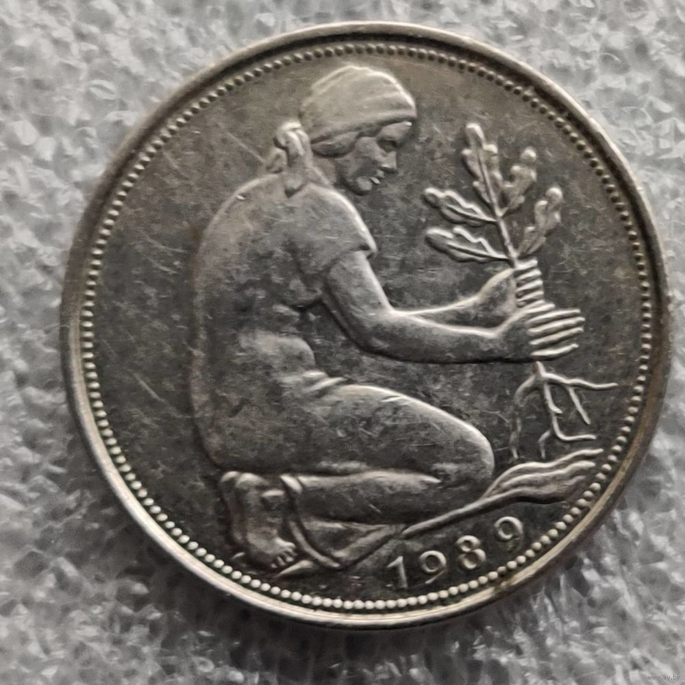 Номер  KM # 109  Страна  Германия  Период  Федеративная Республика (1990 - 2001)  Валюта  Немецкая марка  Вид чекана  Регулярный чекан  Номинал  50 пфеннигов  Год  1950 - 2001  Гурт  Разновидности  Форма  Круг  Отношение авс/рев  Медальное (0°)  Материал  Медно-никелевый сплав  Вес (g)  3,5  Диаметр (mm)  20  Толщина (mm)  1,58