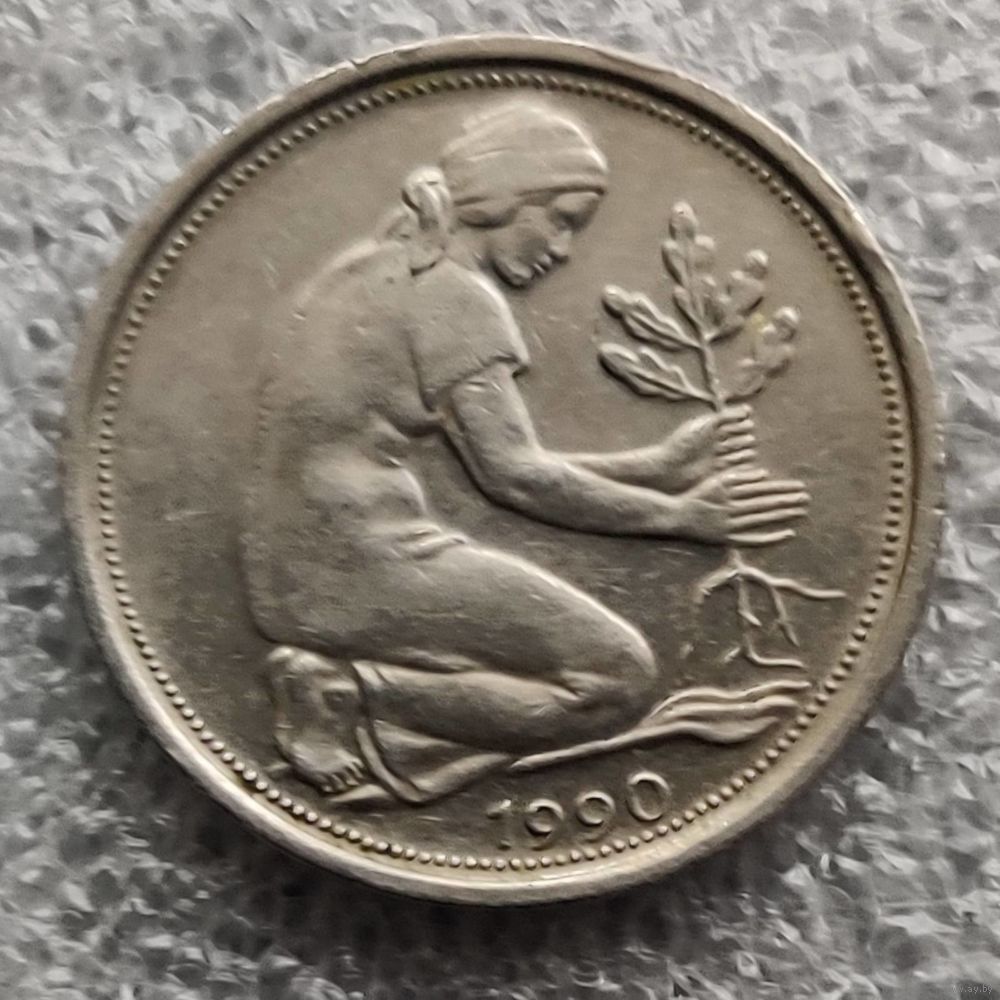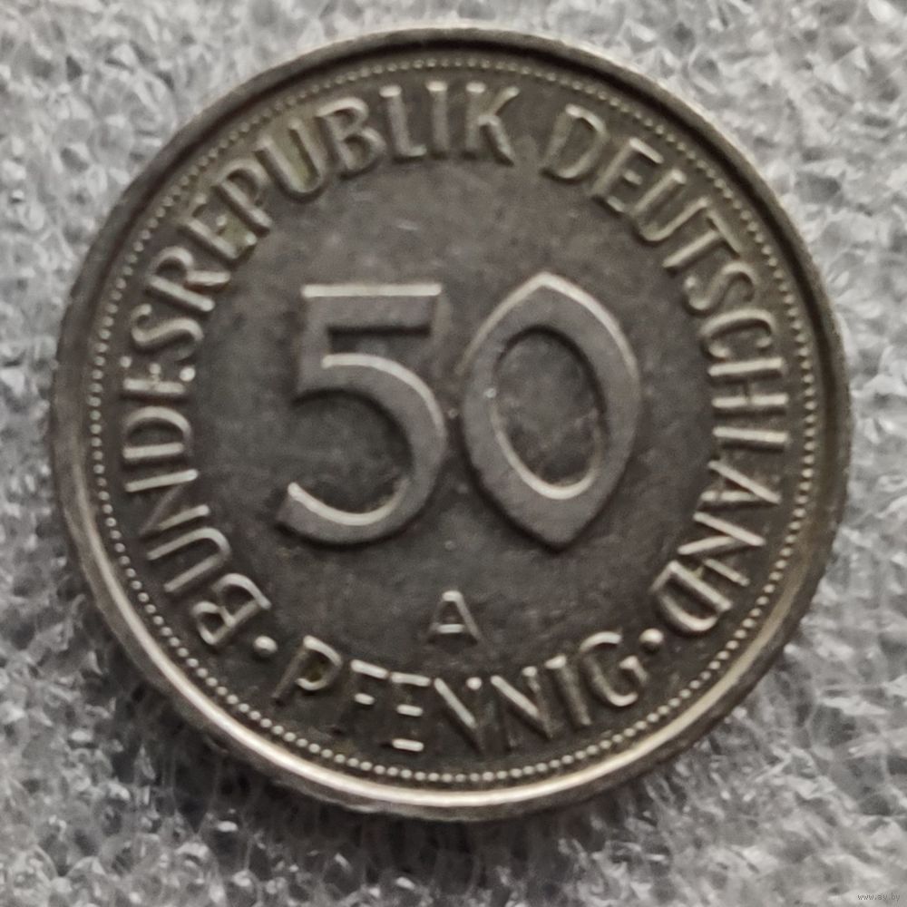 Номер  KM # 109  Страна  Германия  Период  Федеративная Республика (1990 - 2001)  Валюта  Немецкая марка  Вид чекана  Регулярный чекан  Номинал  50 пфеннигов  Год  1950 - 2001  Гурт  Разновидности  Форма  Круг  Отношение авс/рев  Медальное (0°)  Материал  Медно-никелевый сплав  Вес (g)  3,5  Диаметр (mm)  20  Толщина (mm)  1,58