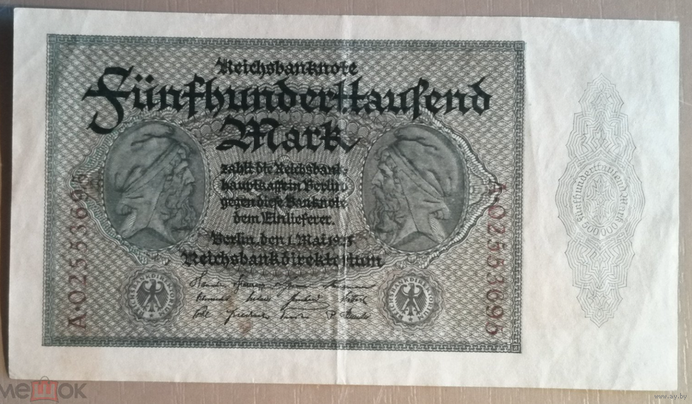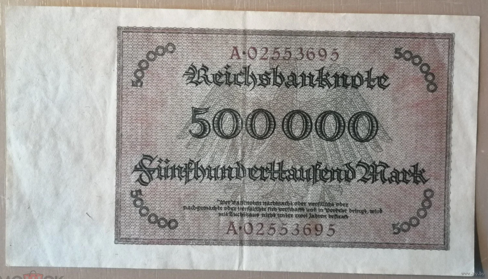Германия, 500000 марок 1923 год, Ro.87b DEU-99b, #8; # на АВ и РВ, дважды (170 х 95 мм)