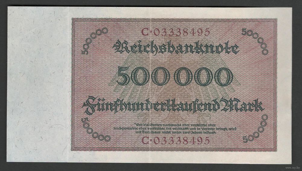 Германия 500000 марок 1923 года. Два номера. Тип Р-88а. Состояние XF+