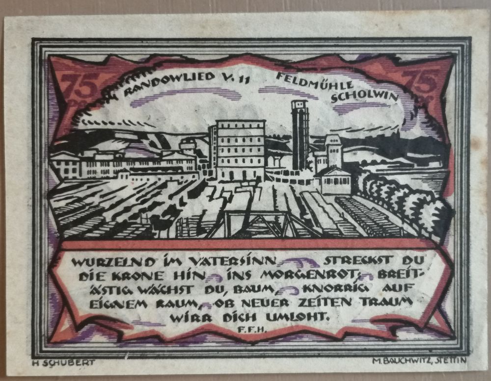 Германия 75 пфеннигов 1921 г Штетин (Stettin), Вар .11, XF+