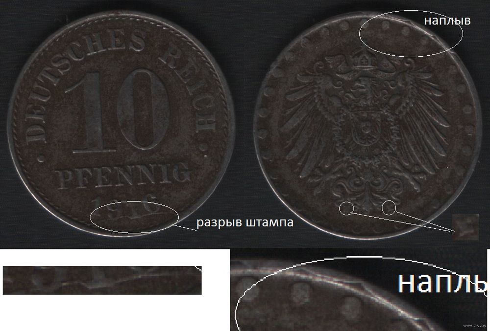 Германия __km20 (Империя) 10 пфенниг 1916 год (нов.тип) точки (E) брак (6873