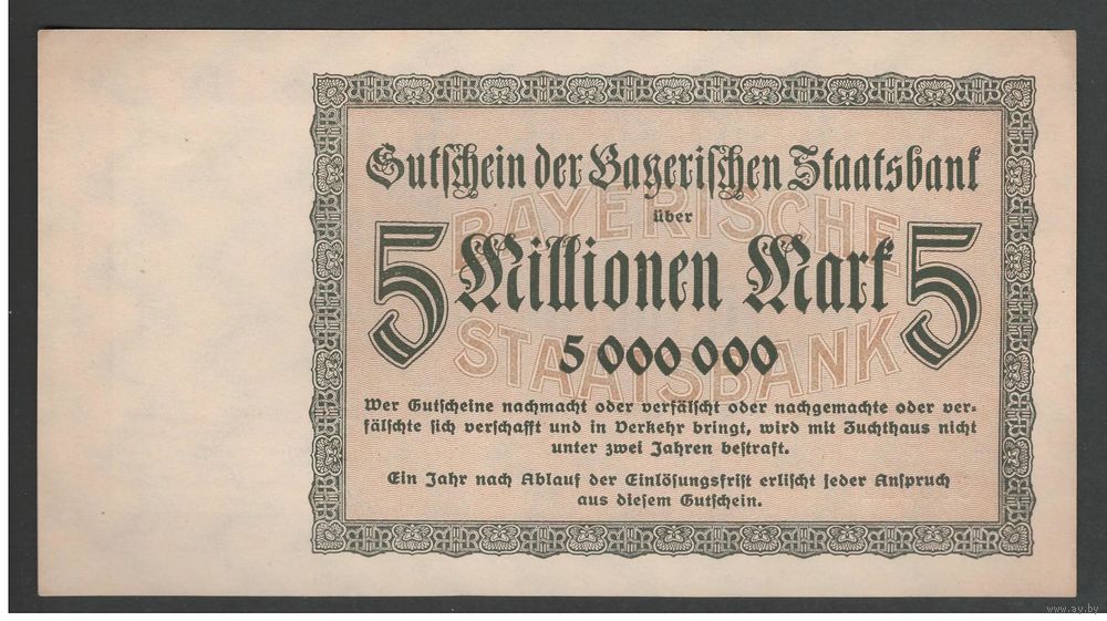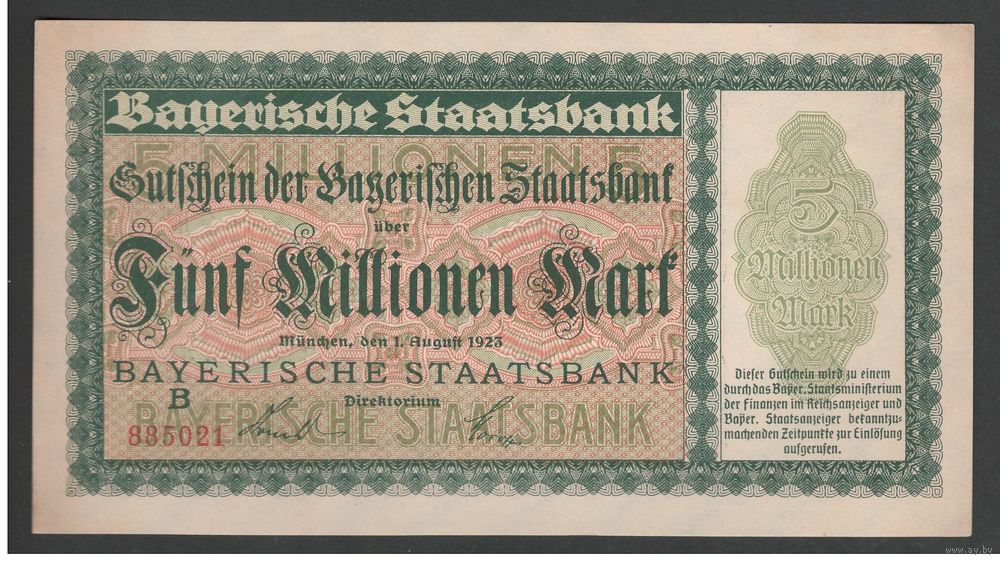 Германия Бавария 5 000 000 марок 1923 года. Состояние UNC!