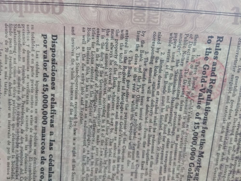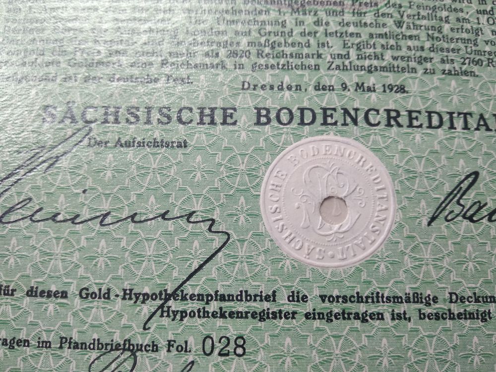 Германия, Дрезден 1928, Облигация, 1000 Голдмарок -8%, Водяные знаки, Тиснение. Размер - А4