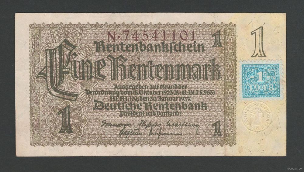 Германия ГДР 1 марка 1948 года. Тип P-1. Состояние XF+