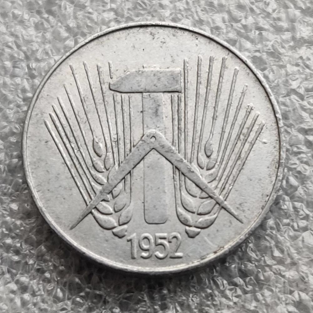 Номер KM # 7 Страна Германия - ГДР Период Восточная Германия (ГДР) (1948 - 1990) Валюта Марка ГДР Вид чекана Регулярный чекан Номинал 10 пфеннигов Год 1952 - 1953 Гурт Гладкий Форма Круг Отношение авс/рев Медальное (0°) Материал Алюминий Вес (g) 1,5 Диаметр (mm) 21 Толщина (mm) 2,1