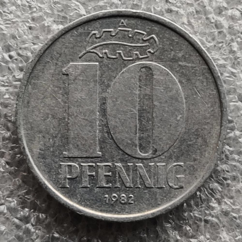 Номер  KM # 10  Страна  Германия - ГДР  Период  Восточная Германия (ГДР) (1948 - 1990)  Валюта  Марка ГДР  Вид чекана  Регулярный чекан  Номинал  10 пфеннигов  Год  1963 - 1990  Гурт  Гладкий  Форма  Круг  Отношение авс/рев  Медальное (0°)  Материал  Алюминий  Вес (g)  1,5  Диаметр (mm)  21  Толщина (mm)  2,1