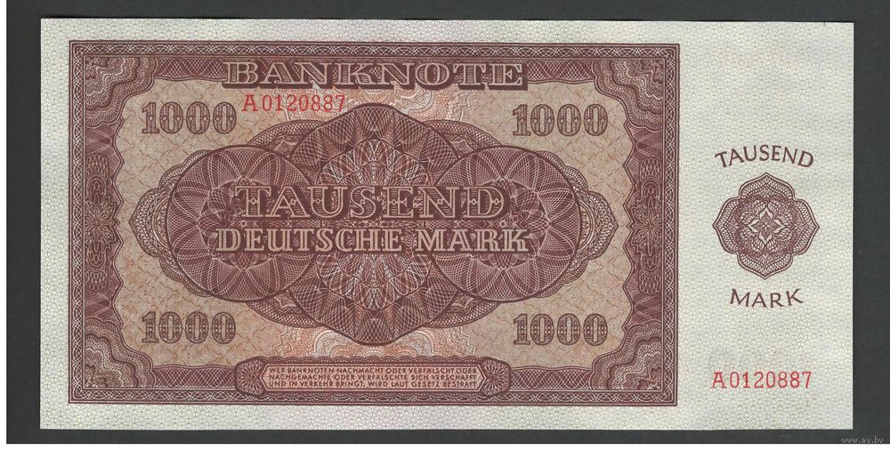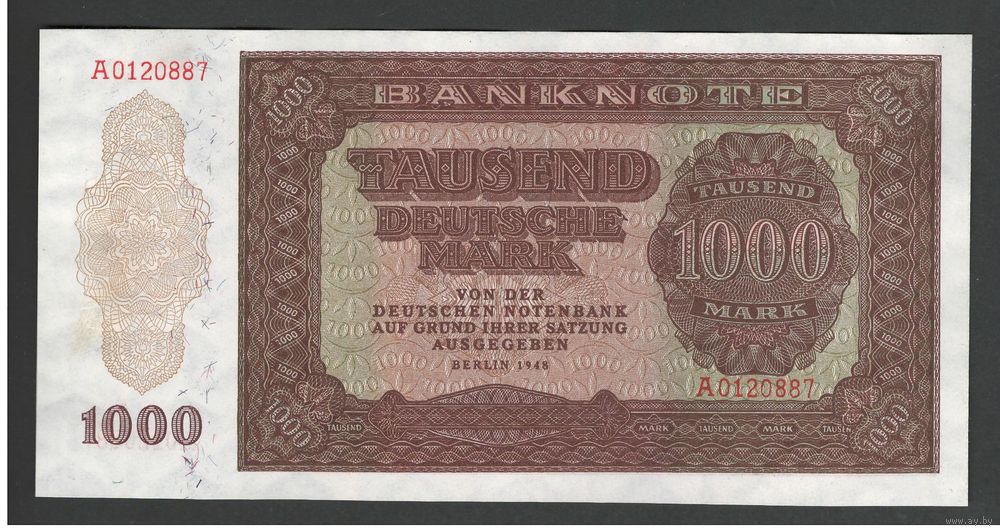 Германия ГДР 1000 марок 1948 года. Тип P-16. Состояние UNC!