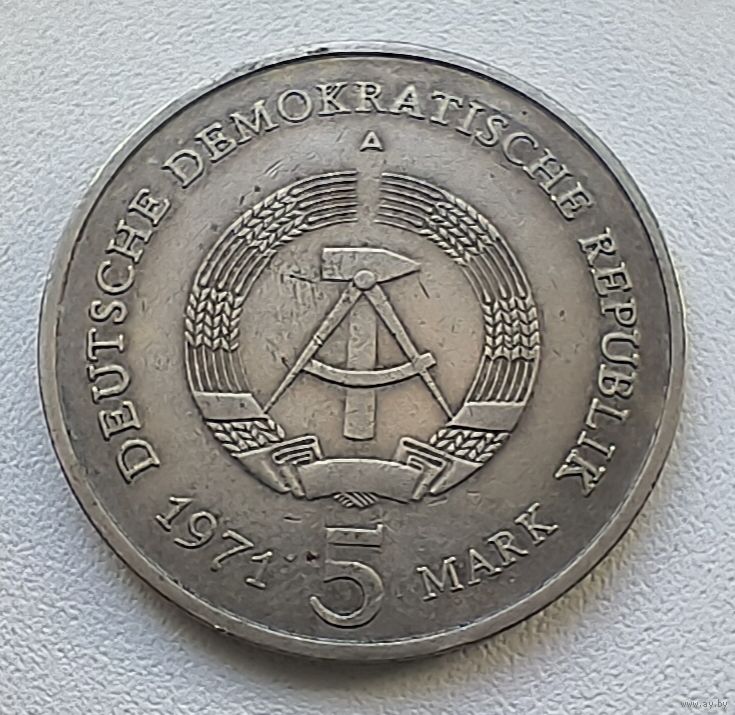 Германия - ГДР 5 марок, 1971 Бранденбургские Ворота в Берлине 1-6-14