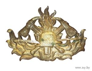 Германия. Кокарда с фуражки офицера пожарной команды. Первая половина 20 века. Латунь, серебрение. Крепёжные усы на месте. Размеры: 6 х 4 см.