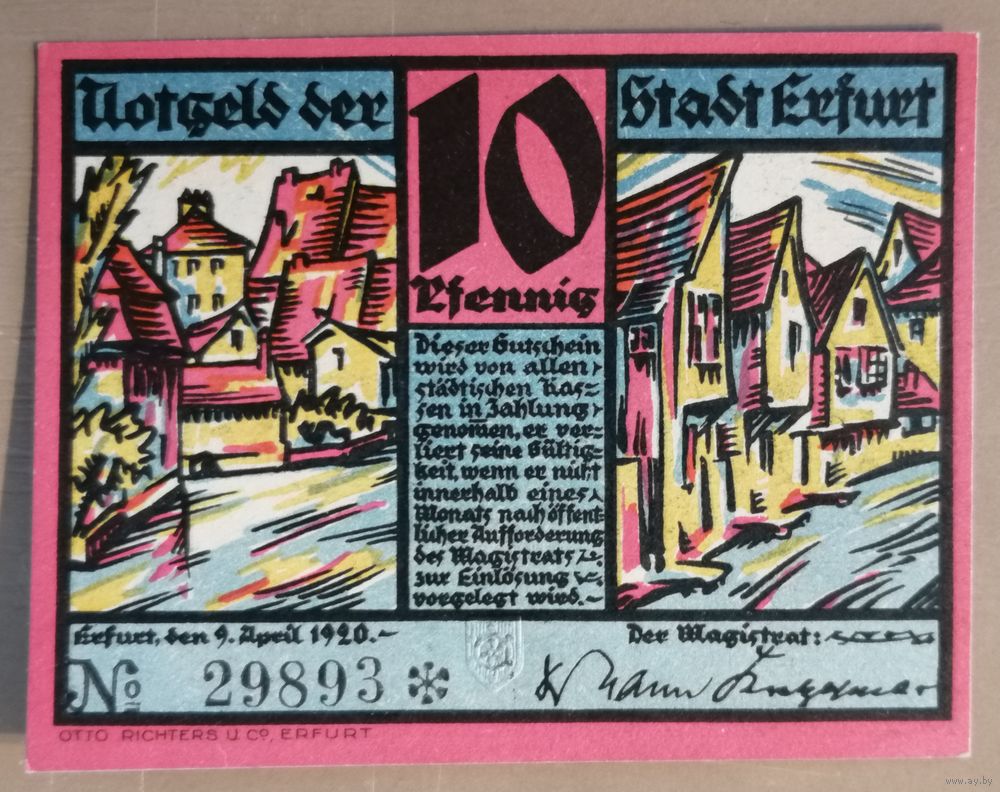 Германия, нотгельды, 50 пфеннигов 1921 год, Эрфурт (Erfurt), 344.6 (каталог FOX NOTES) (83 х 65 мм)