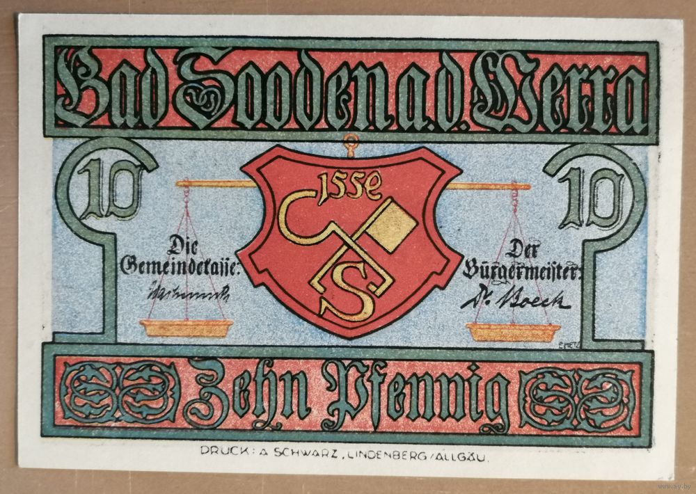 Германия, нотгельды, 10 пфеннигов 1921 год, Зооден на Верра (Bad Sooden an der Werra),