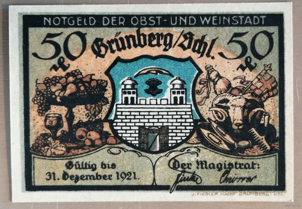Германия, нотгельды, 50 пфеннигов 1921 год, Вайнштадт, 489.1a, Рв печать черная, вар. 6