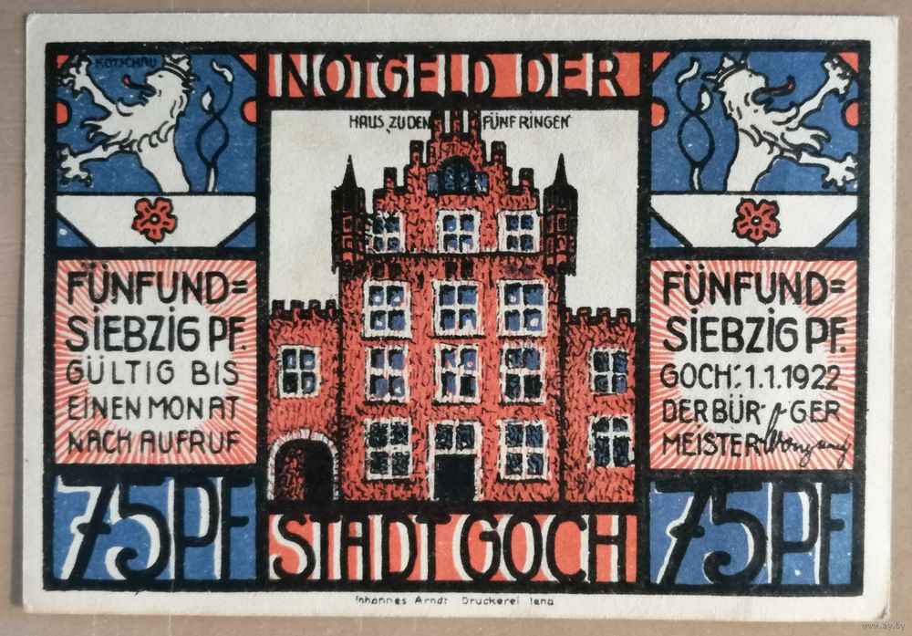 Германия, нотгельды, 75 пфеннигов 1922 год, Гох (Goch), 445.3а, вар. 6, (94 х 65 мм)