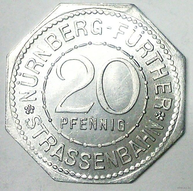 ГЕРМАНИЯ НЮРНБЕРГ 20 пфеннигов 1920 год "Фонтан "ДОБРОДЕТЕЛЕЙ" в НЮРНБЕРГЕ" -ШТЕМПЕЛЬНЫЙ БЛЕСК!