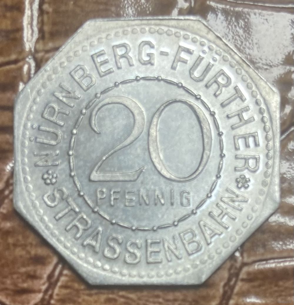 Германия Нюрнберг нотгельд 20 пфеннигов 1919 год. Бург. трамвайный жетон
