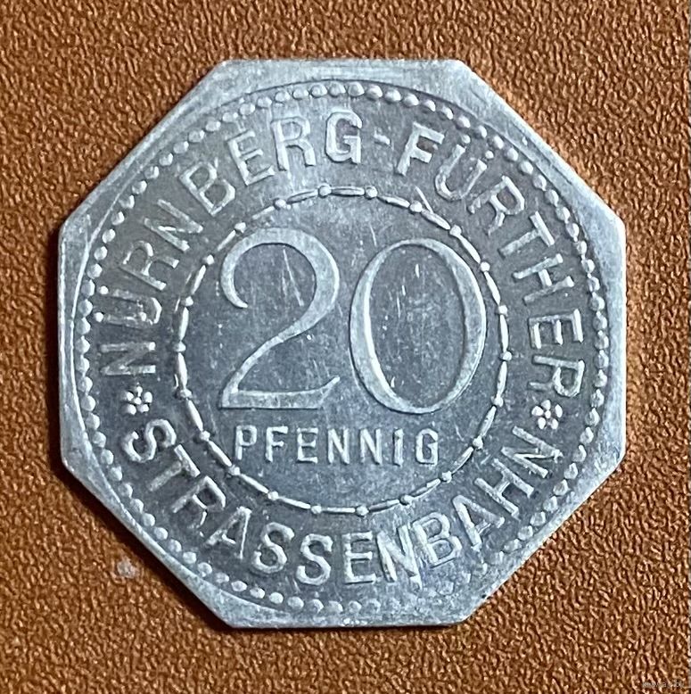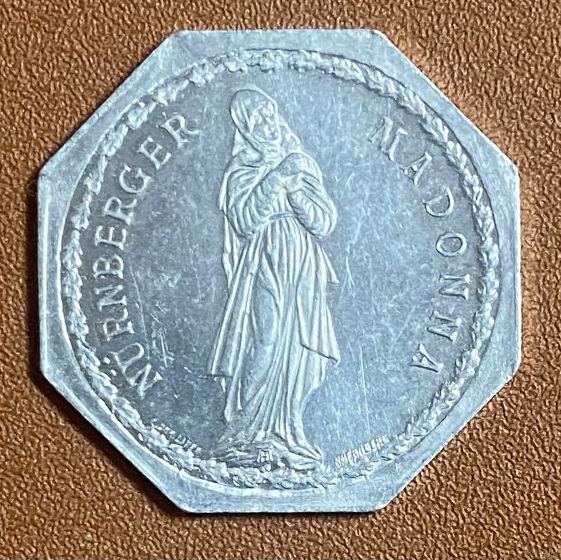 Германия Нюрнберг нотгельд 20 пфеннигов 1919 год. Нюрнбергская Мадонна. трамвайный жетон