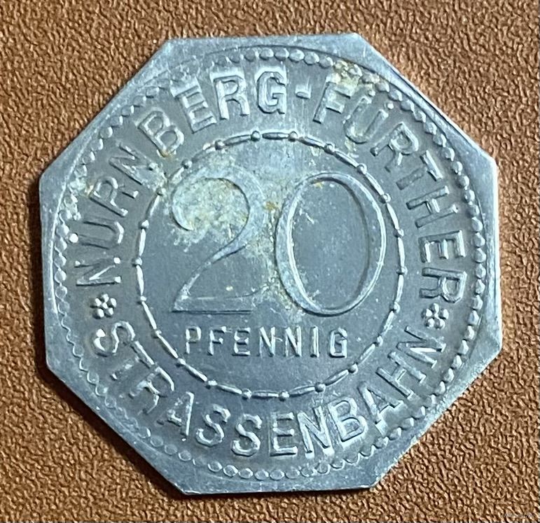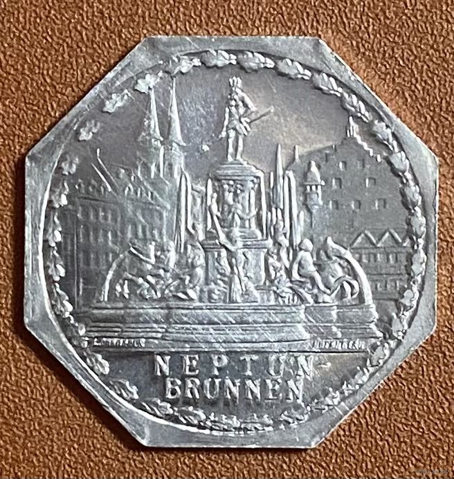 Германия Нюрнберг нотгельд 20 пфеннигов 1920 год. фонтан Нептуна. трамвайный жетон