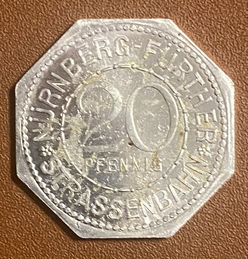 Германия Нюрнберг нотгельд 20 пфеннигов 1921 год Старая ратуша. трамвайный жетон