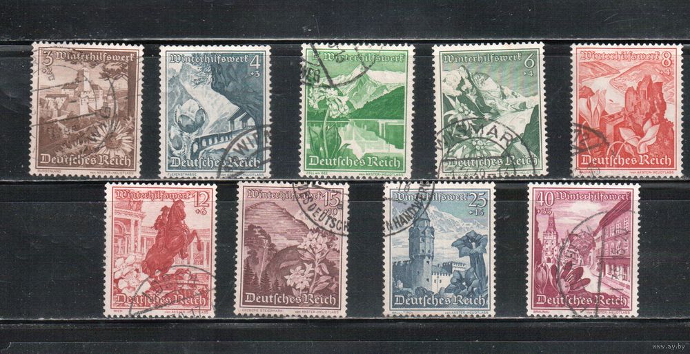 Германия(Рейх)-1938,(Мих.675-683) гаш., Зимняя помощь, Цветы(полная серия)