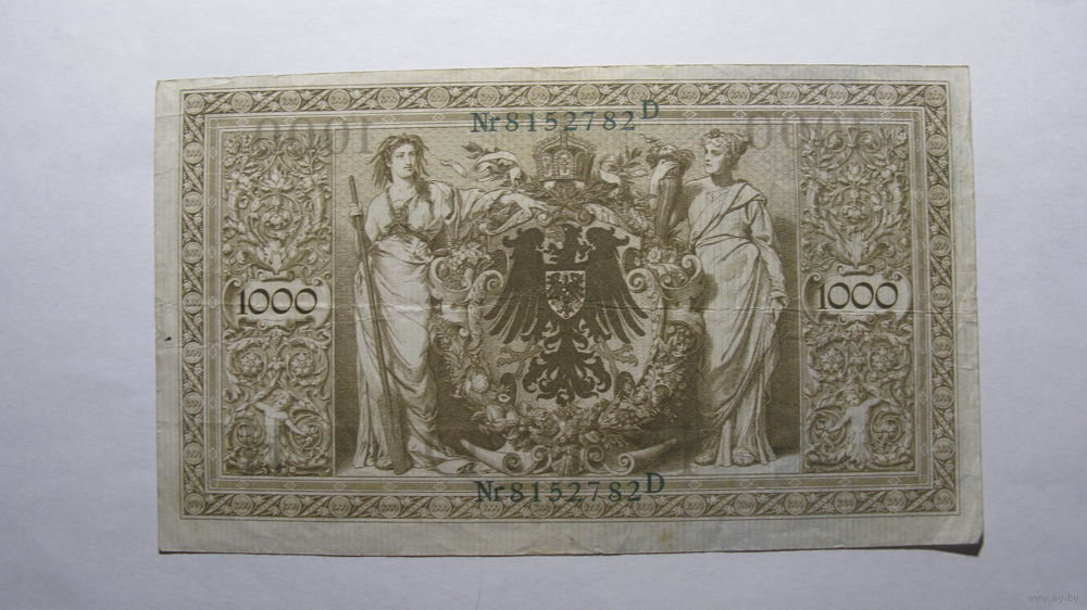 Германия Ro46b. 1000 марок 1910 г. (Печать зелёная . 7 цифр в номере)