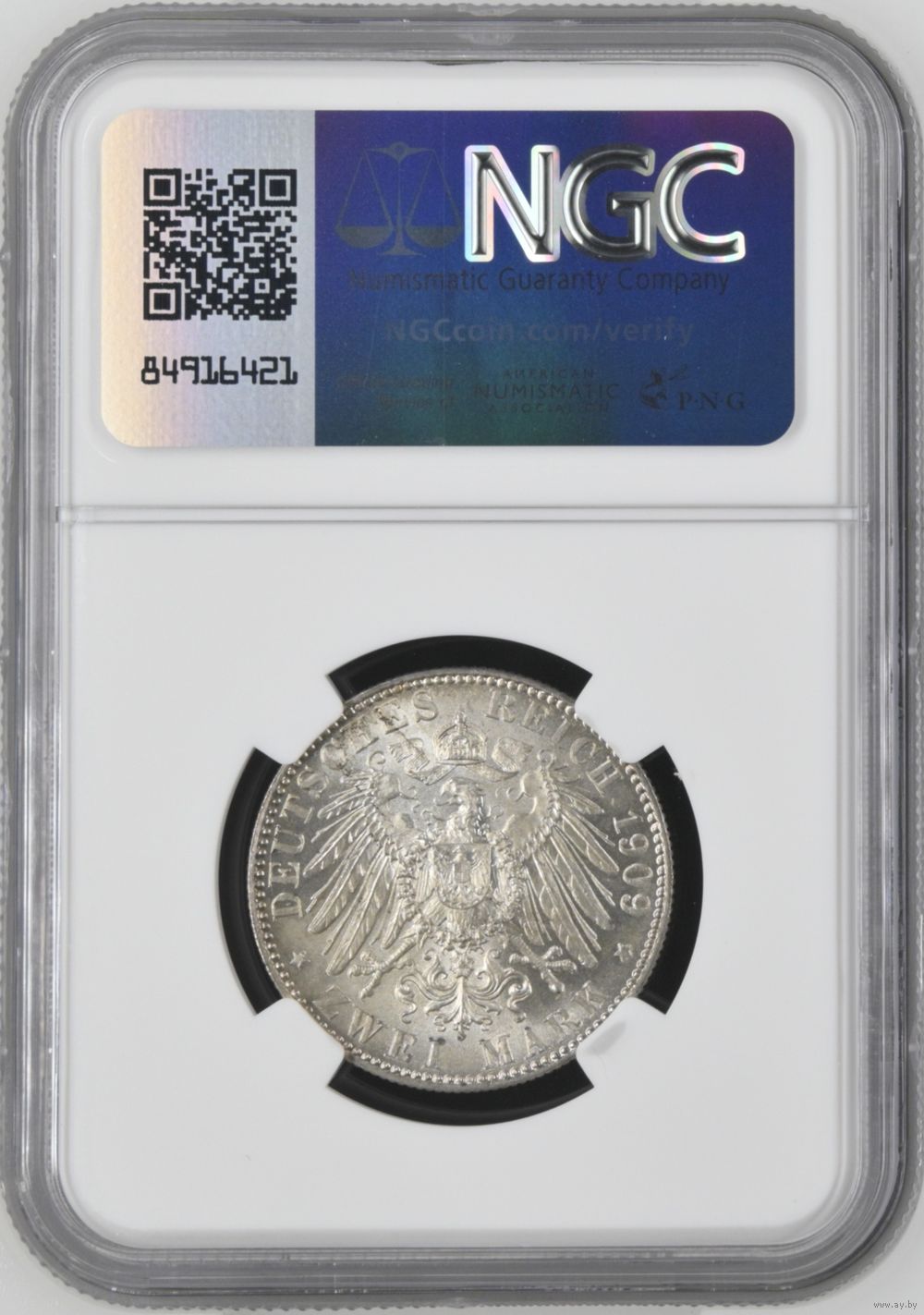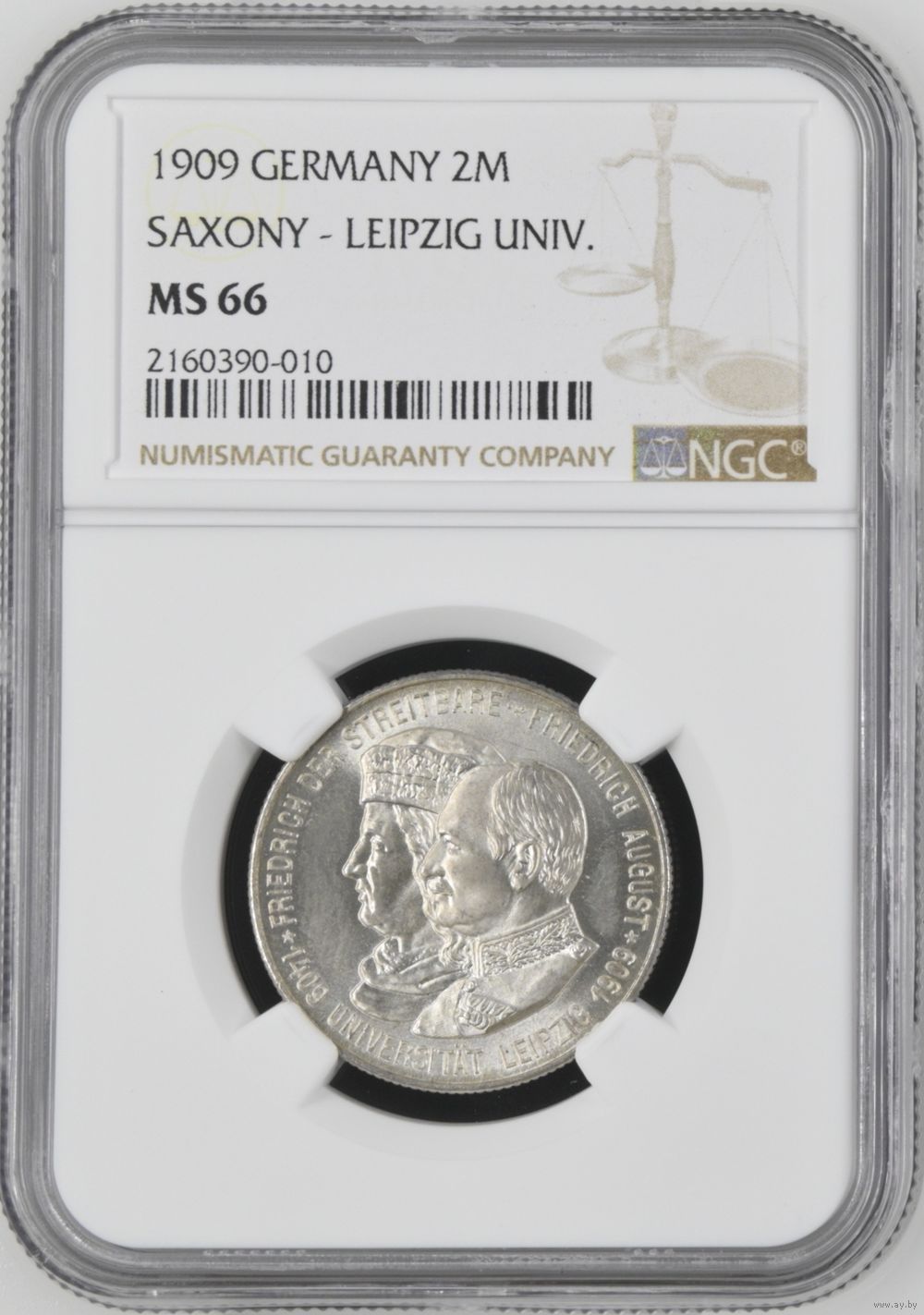 Германия. Саксония. 100 лет университету Лейпцига. 2 марки 1909г. слаб NGC MS66.