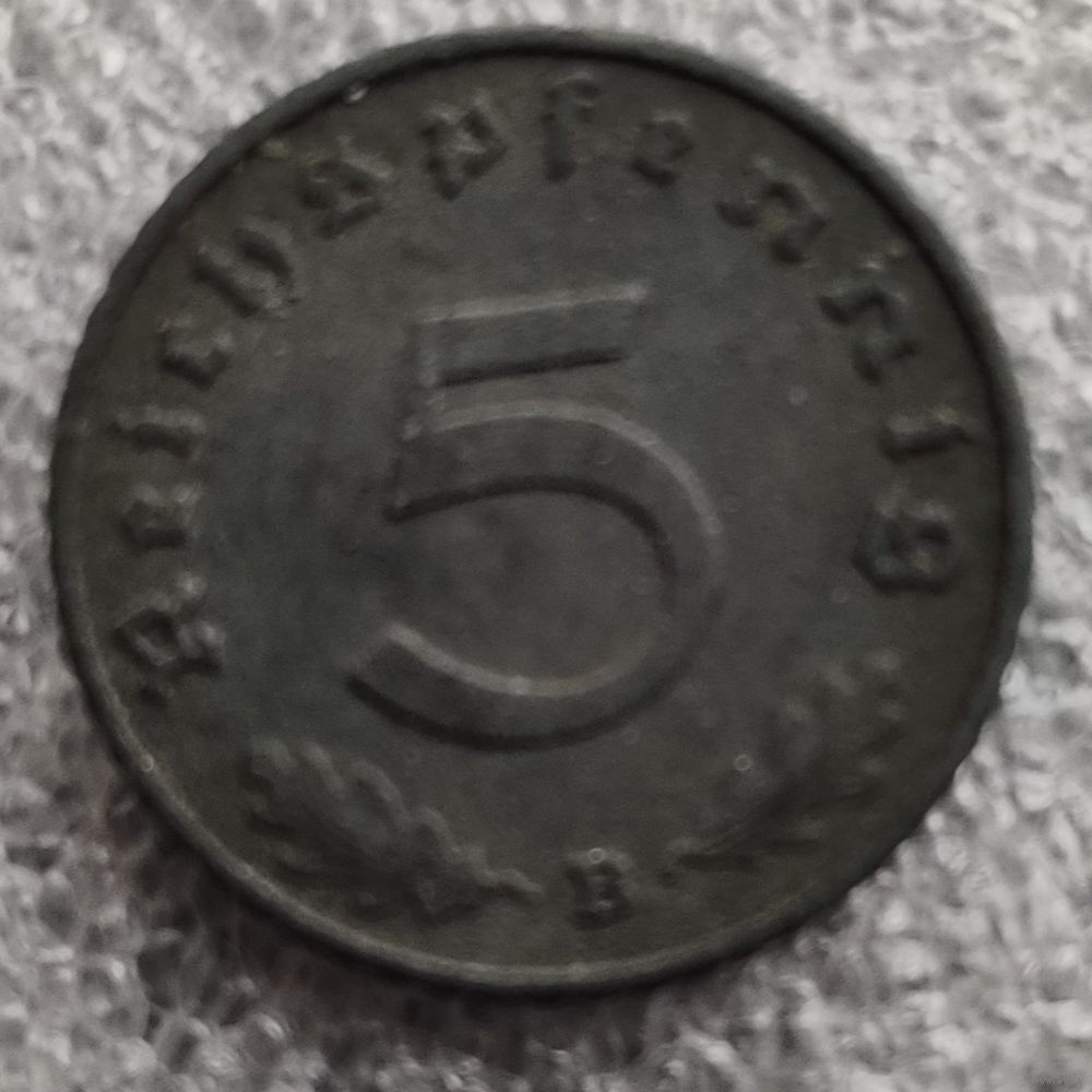 Номер KM # 100 Страна Германия - Третий рейх Период Нацистская Германия (1933 - 1945) Валюта Немецкая рейхсмарка Вид чекана Регулярный чекан Номинал 5 рейхспфеннигов Год 1940 - 1944 Гурт Рубчатый Форма Круг Отношение авс/рев Медальное (0°) Материал Цинк Вес (g) 2,5 Диаметр (mm) 19 Толщина (mm) 1