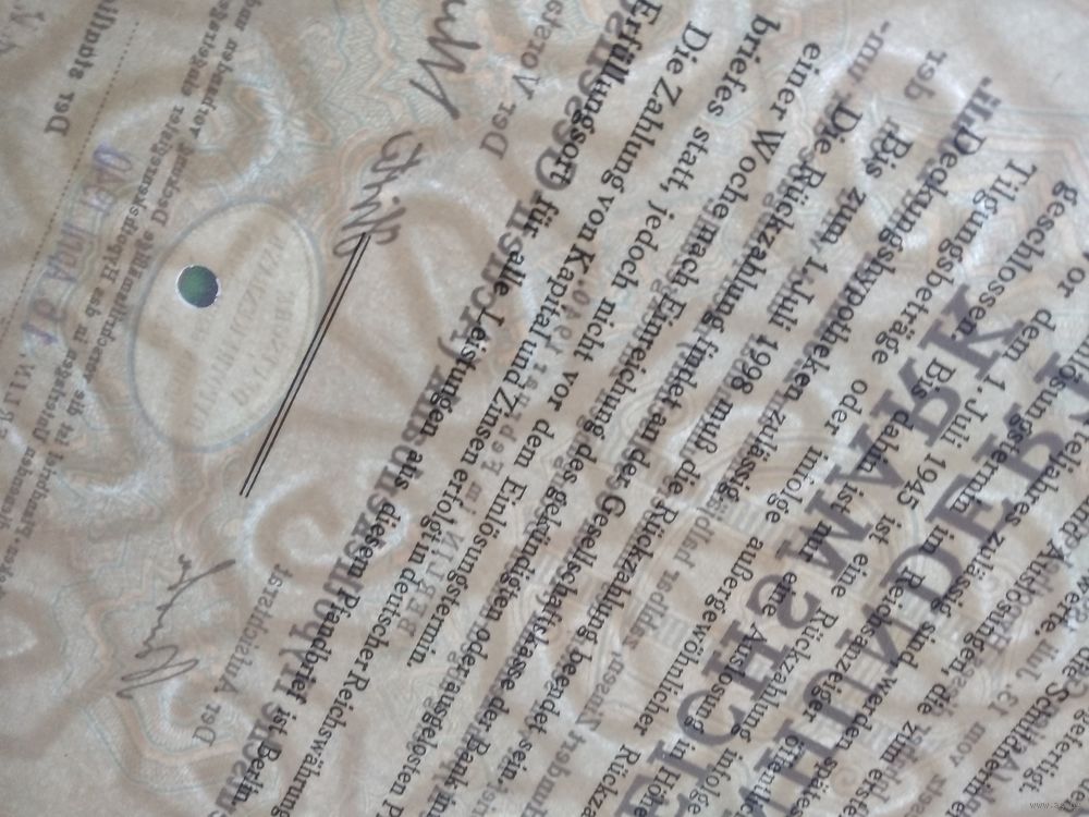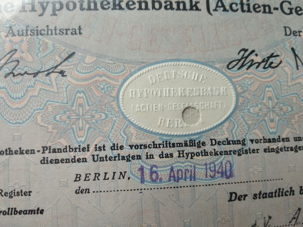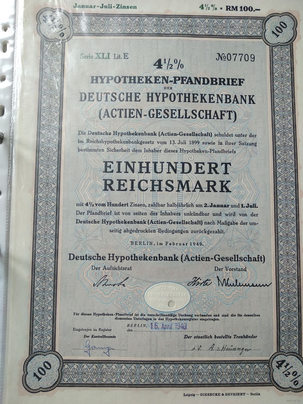 Германия,Третий Рейх, Берлин 1940, Облигации, 100 Рейхсмарок -4,5%, Водяные знаки, Тиснение. Размер - А4