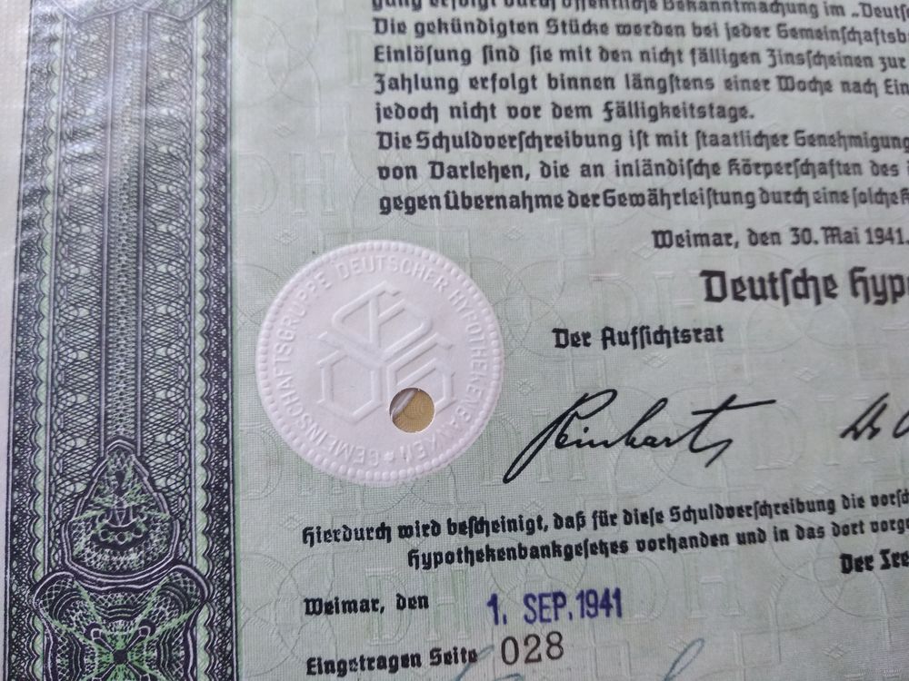 Германия, Третий Рейх, Веймар 1941 (2й вариант), Ипотечное письмо, 100 Рейхсмарок - 4,5%, Водяные знаки, Тиснение. Размер - А4 З-3