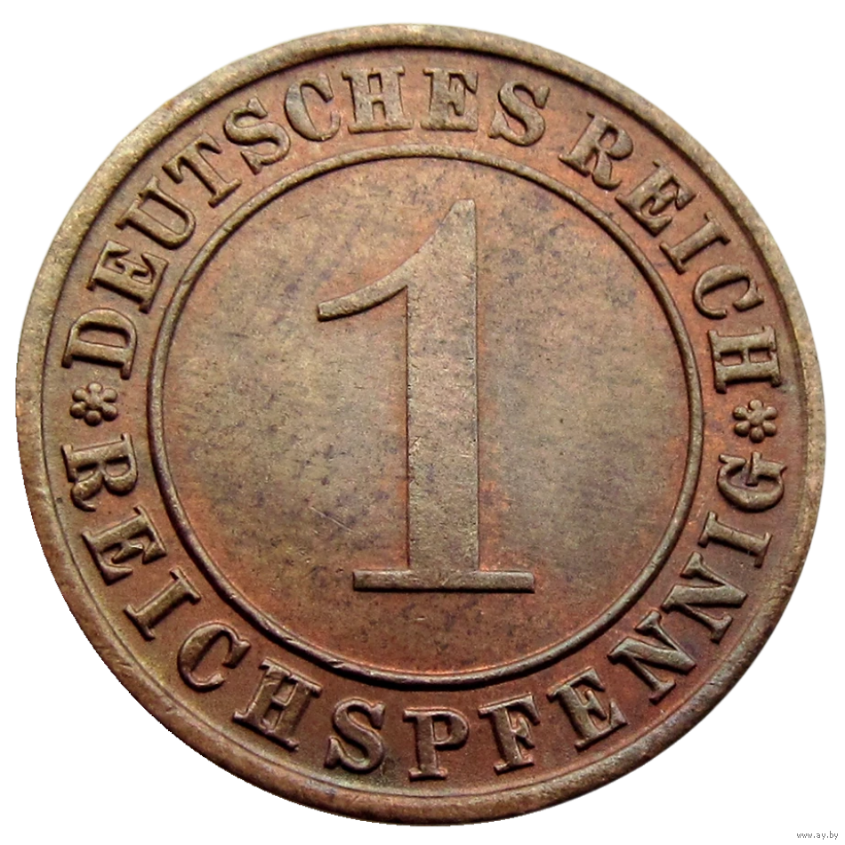 Германия, Веймарская республика, 1 рейхспфенниг 1936 года (J), сост. Unc, копна пшеницы, KM #37