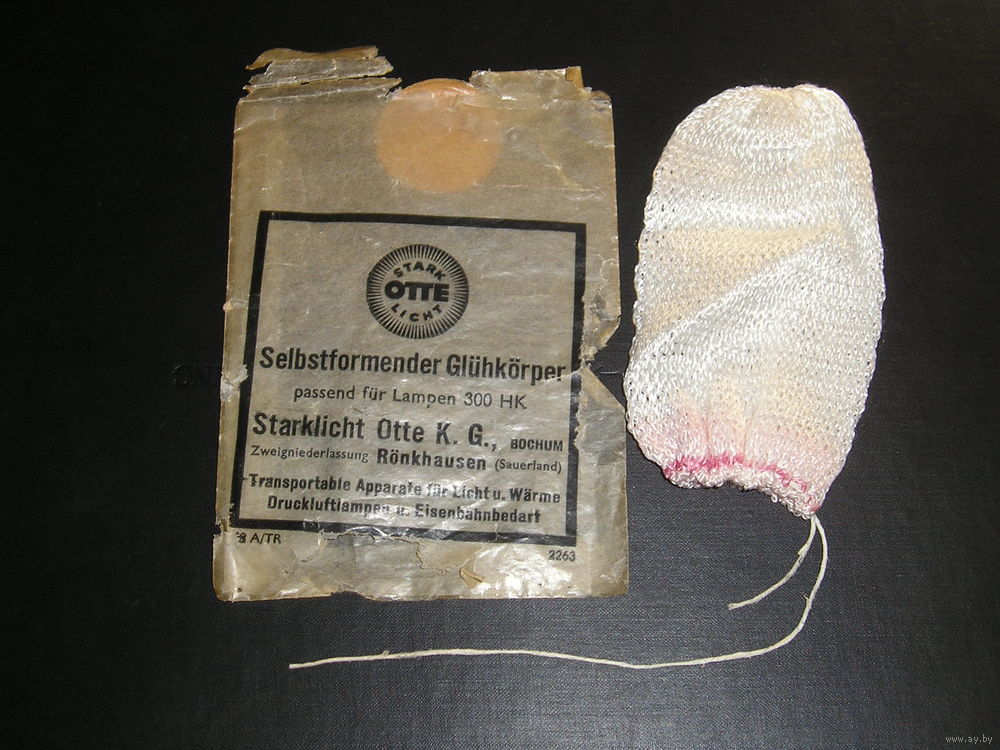 Первые образцы появились в XIX веке благодаря трудам Уильяма Тальбота, а дальнейшее развитие этой технологии связано с именем австрийского изобретателя Карла Ауэра фон Вельсбаха, которому удалось получить ряд эффективных составов. Наилучшим составом смеси является — 99 % оксида тория и 1 % оксида церия. Этот состав получил распространение до того, как на него был выдан патент, что обусловило его широкое применение.