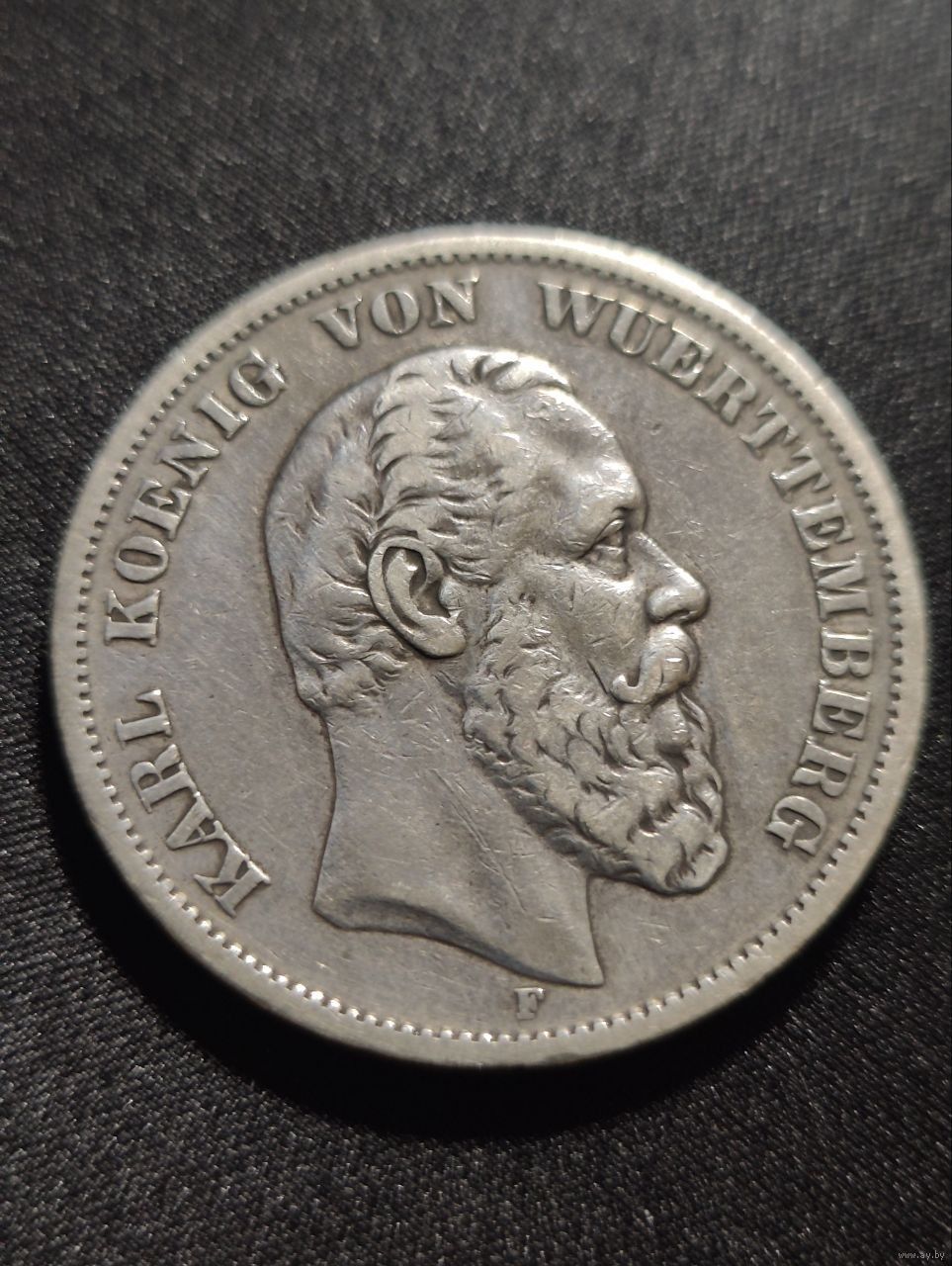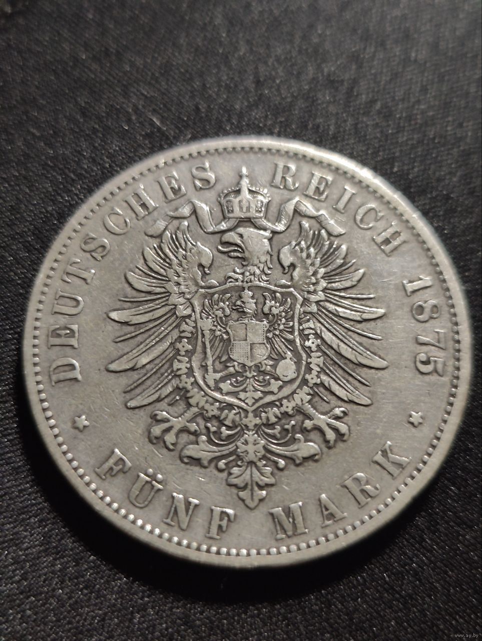 Германия. Вьютемберг. 5 марок 1875 F. Старый герб.