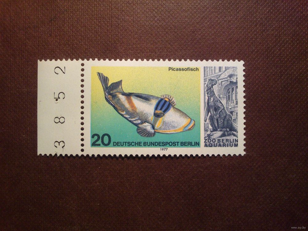 Германия .Западный Берлин 1977 г.Рыба-триггер Пикассо,семейства спинороговых с уникальным узором, напоминающим картину.Чистая с клеем .MNH.