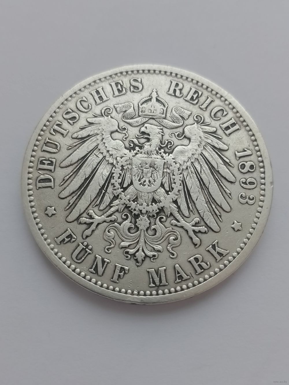 Германская империя 5 марок 1893, серебро. тираж 215 тыс.