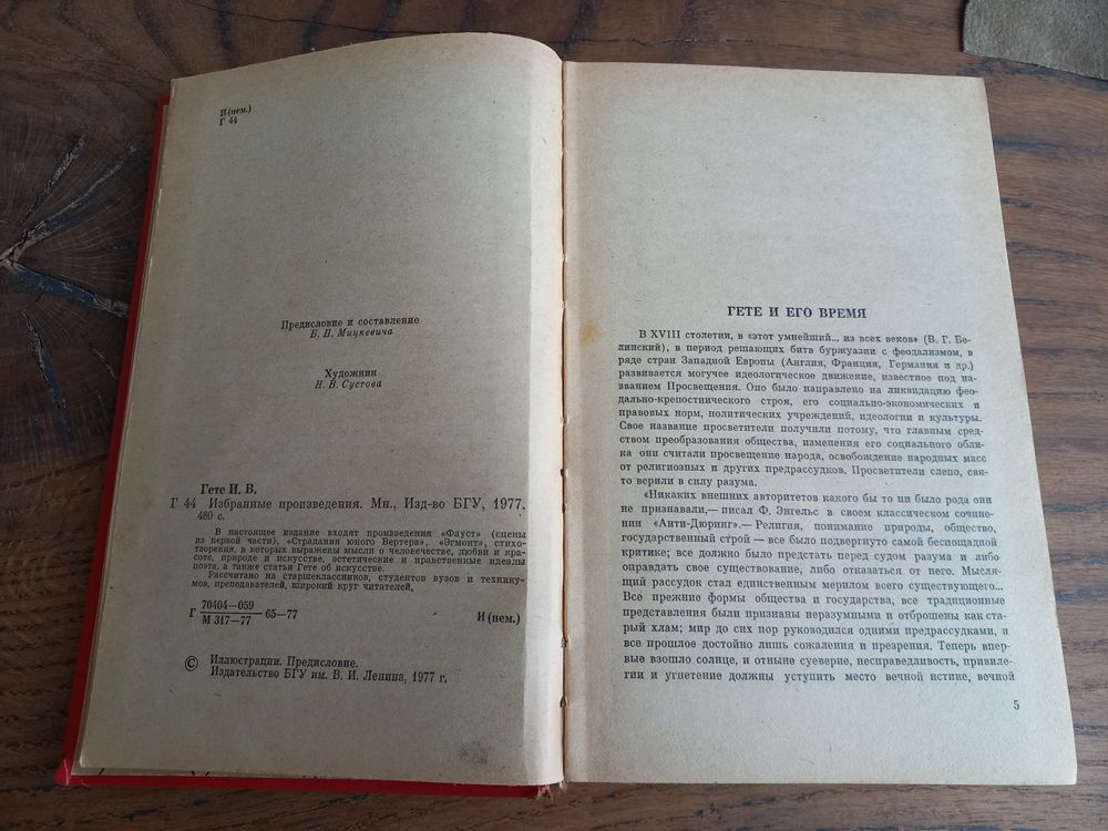 И. В. Гете, 1977 год, избранные произведения. Минск, БГУ им. Ленина, тираж 200 000 экземпляров.
