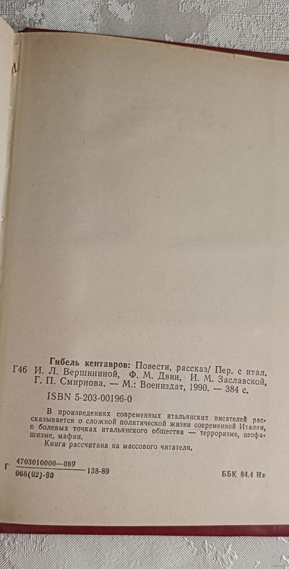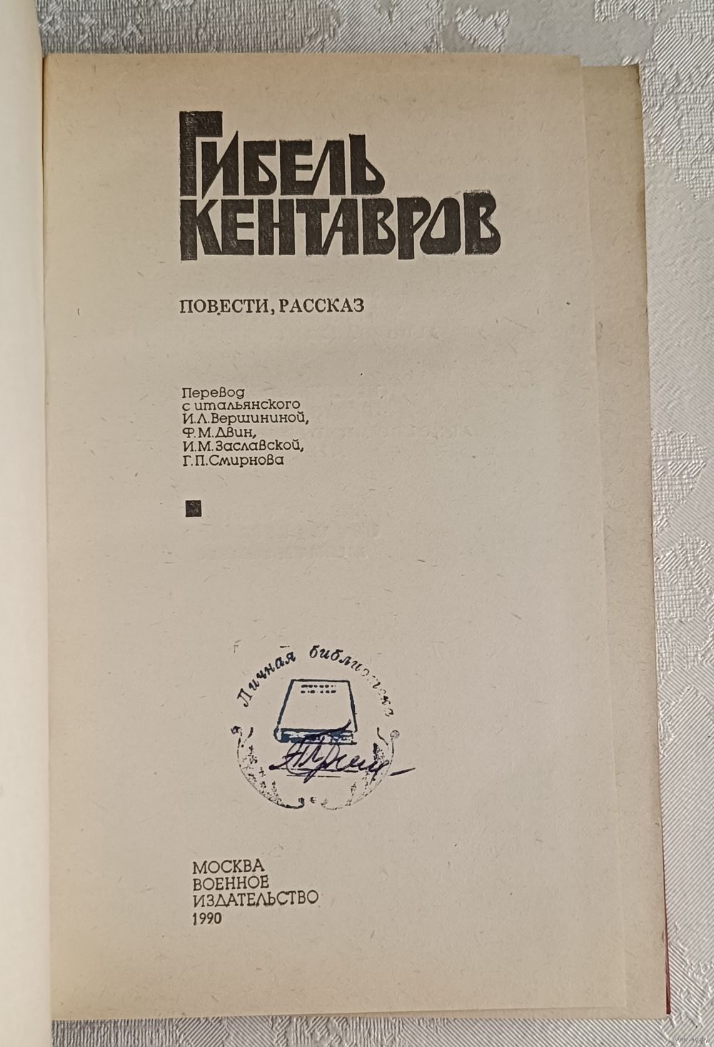 Гибель кентавров: Повести, рассказ. М.: Воениздат, 1990. — 384 с., твердый переплет, обычный формат.