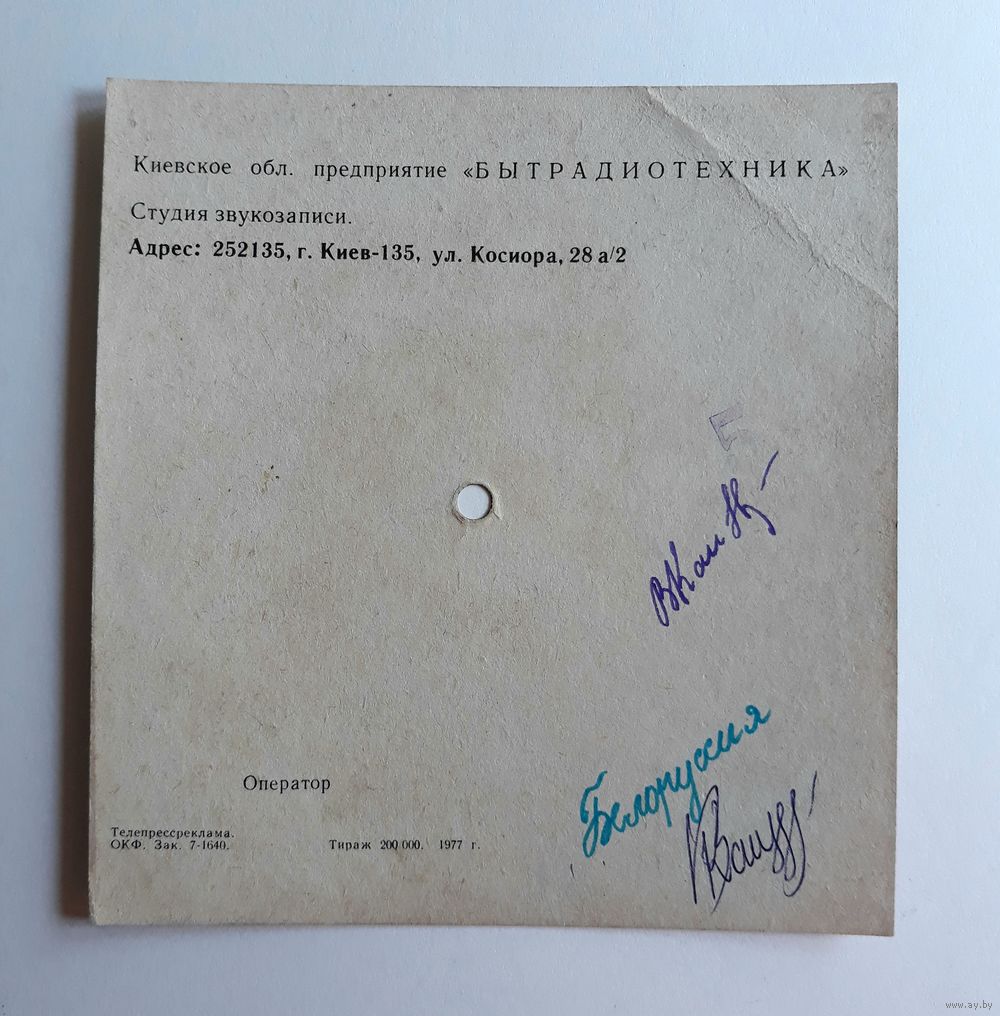 Гибкая пластинка с песней "Белоруссия" Исп. Песняры. Студия звукозаписи Киев.
