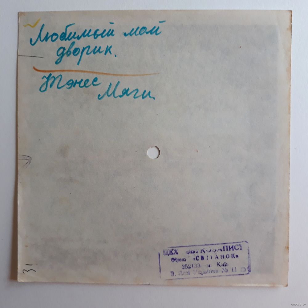Гибкая пластинка с песней "Любимый мой дворик" Исп. Тынис Мяги. Студия звукозаписи Киев.