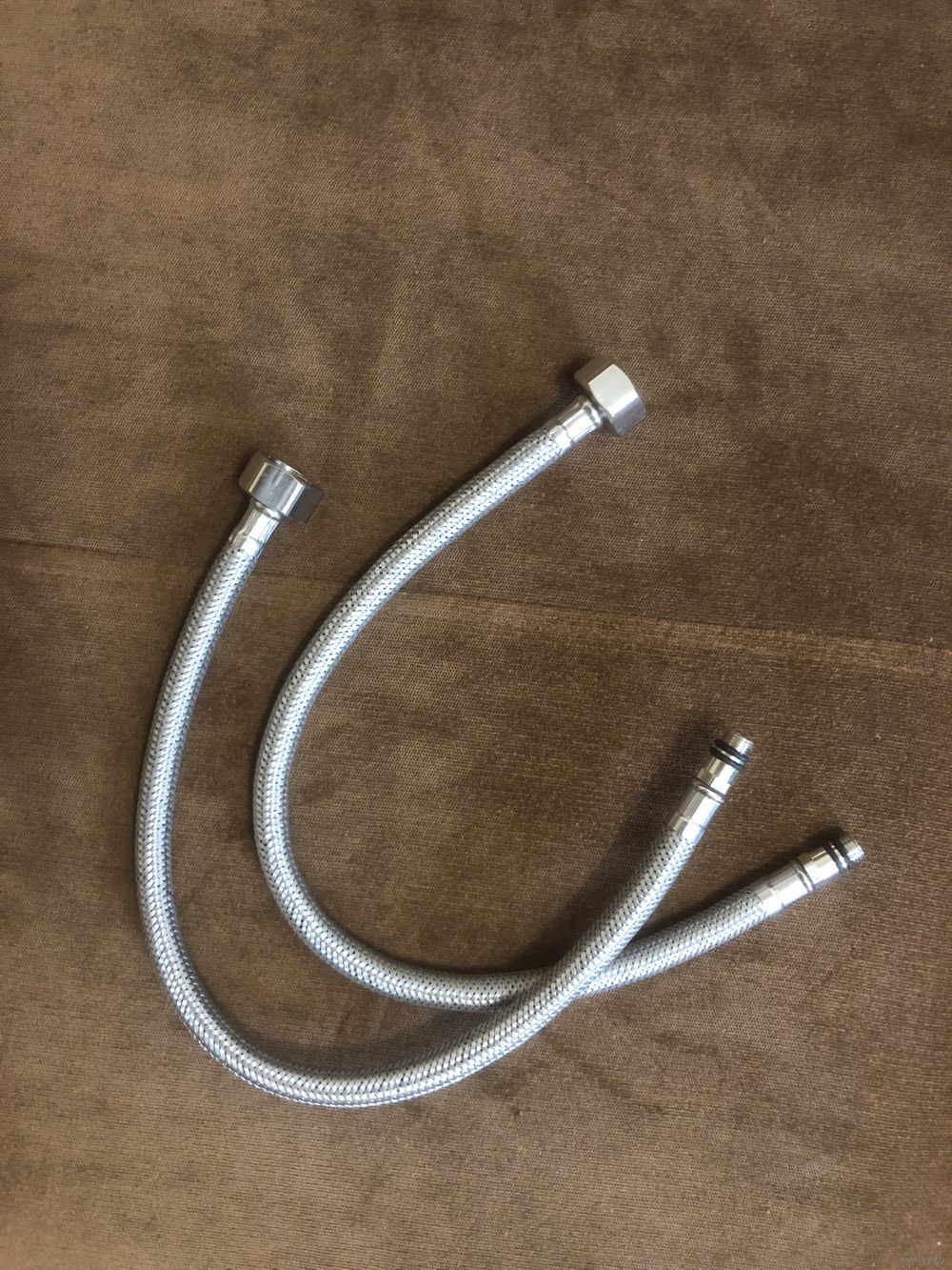 Гибкие подводки для смесителя, длинна 40 сантиметров, иголка М10, с двумя резиновыми кольцами, гайка ½”, прокладка гайки из силикона. Оплетка из нержавеющей стали. Цена указана за комплект из 2 шт.