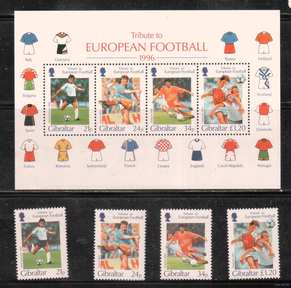 Гибралтар-1996, (Мих.759-762,Бл.25) ** , Спорт, ЧЕ-1996 по футболу,(полная серия)