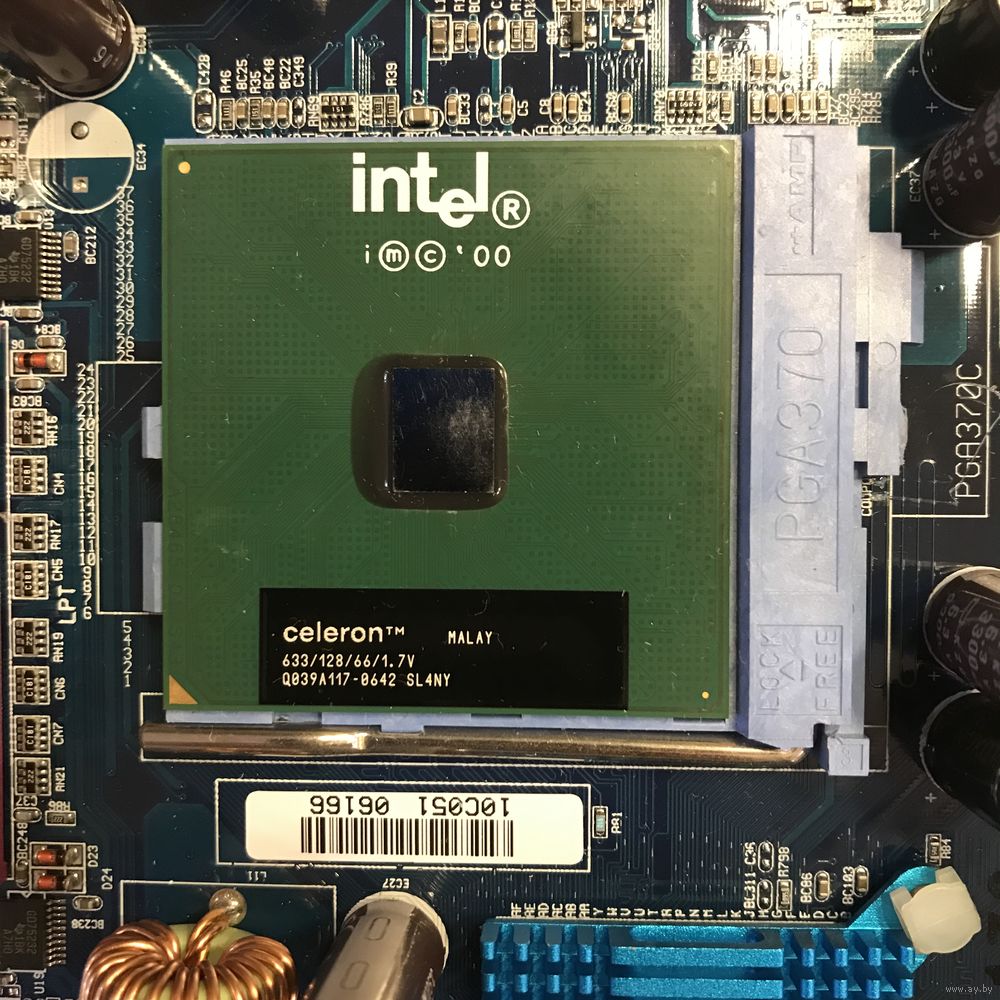 Комплект: материнская плата Socket 370 Gigabyte GA-6OXT (rev. 1.0) + процессор SL4NY (Intel Celeron 633 MHz) + модуль памяти 64MB PC100 SDRAM.